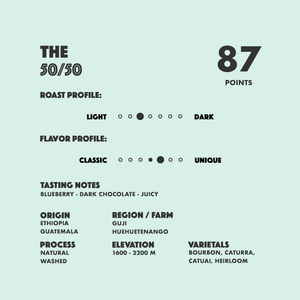 Our two best selling coffees, blended together. A fruit forward Ethiopia with a chocolatey Guatemala creates a dynamic and delicious blend.
